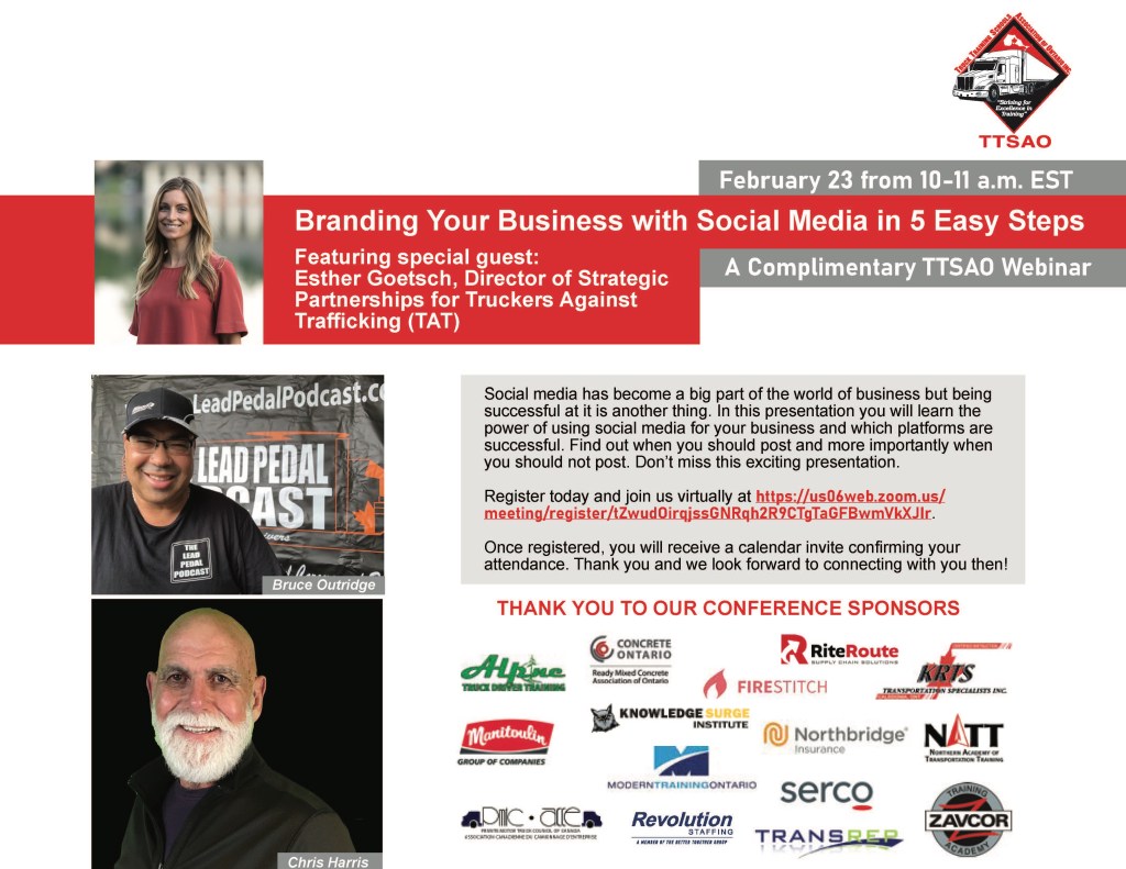 The Truck Training School Association of Ontario (TTSAO) was to have their in-person conference on February 23rd 2022. Due to Covid restrictions the conference team decided postpone the event to a later date yet to be determined.